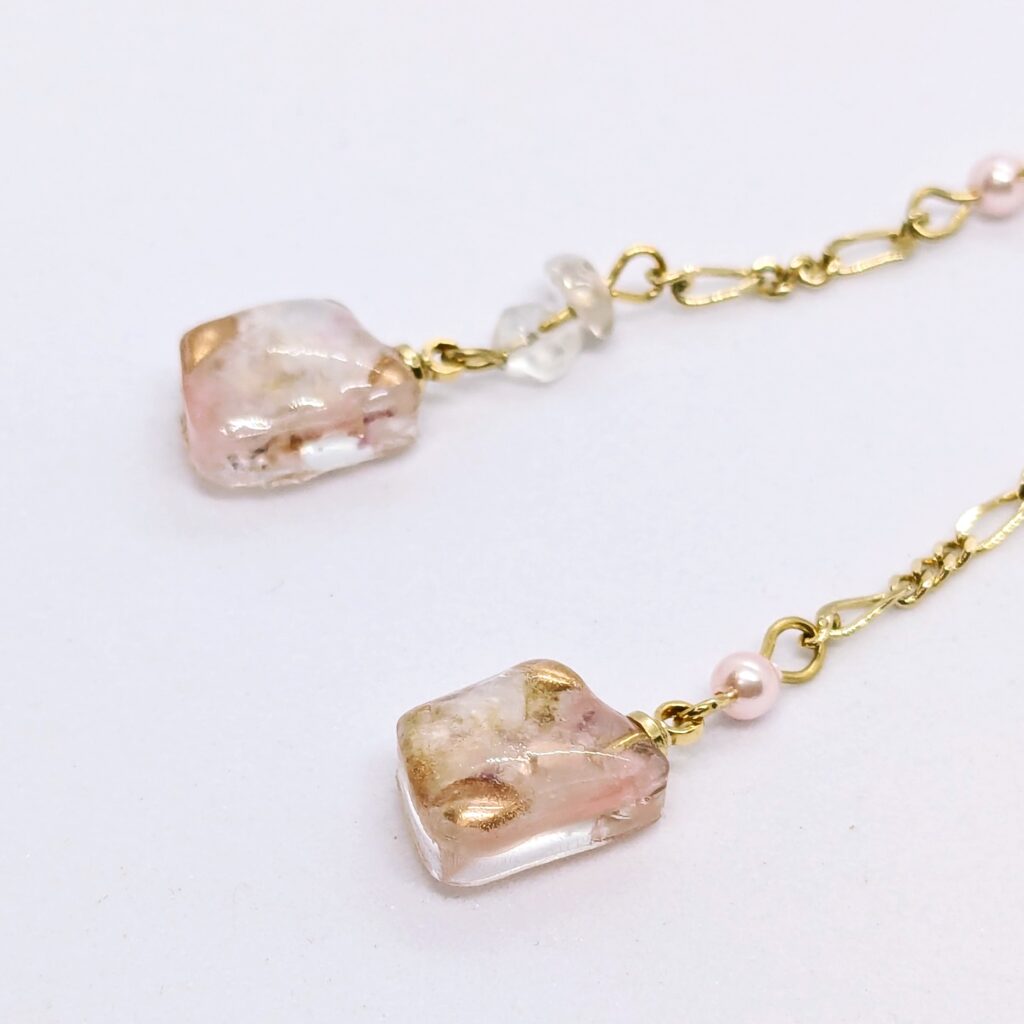 アシンメトリーデザインのドライフラワーを使ったピアス/イヤリングです。